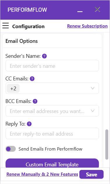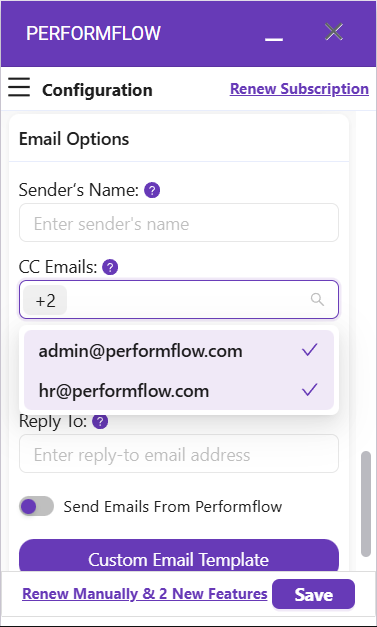 In the CC Emails or BCC Emails field, enter the email addresses that you want to add.