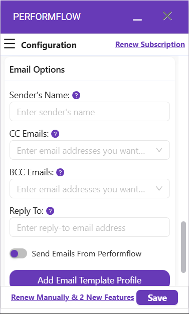 You can add additional recipients to your workflow emails using the CC Emails and BCC Emails fields. These settings apply to all emails sent in the workflow, including emails sent to recipients and respondents.