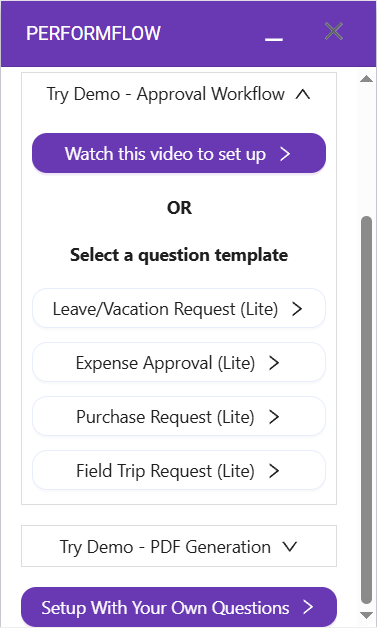 PerformFlow is a Google Forms add-on created by JetDyno. It helps you automate document creation and approval workflows directly from your forms.