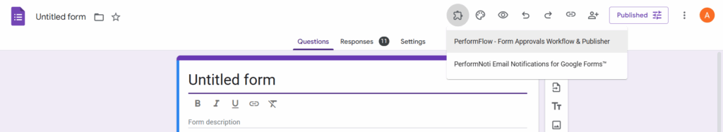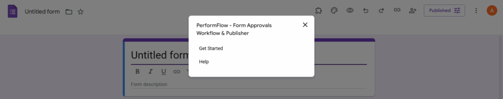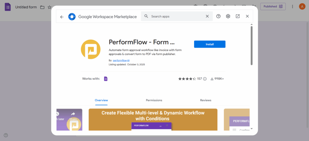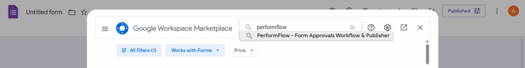 You can install PerformFlow from either Google Forms or the Google Workspace Marketplace.